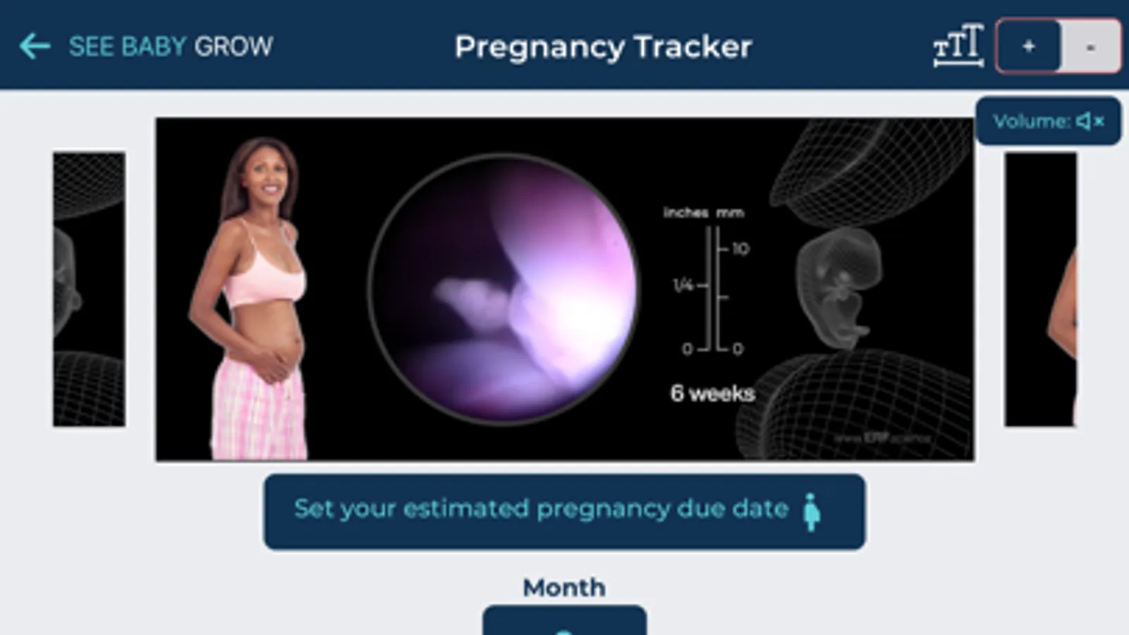 The app’s interactive pregnancy illustrator can be fully personalized, and is intended to promote public health generally by teaching fetal/maternal health specifically. This feature uses embryoscopy, fetoscopy, and high-resolution ultrasound scans, as well as animations, illustrations, and diagrams created exclusively for this project.