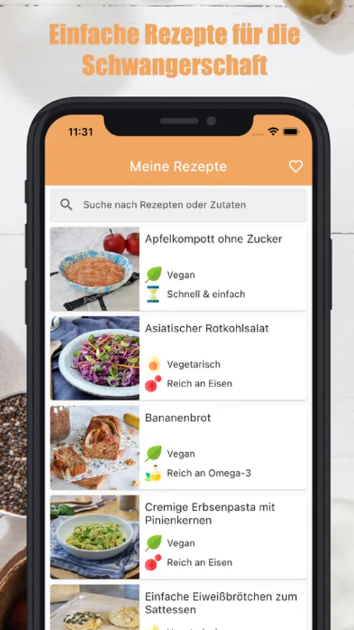 • Eine stetig wachsende Rezeptsammlung mit abwechslungsreichen, nährstoffreichen und leckeren Gerichten zum Nachkochen für die Schwangerschaft