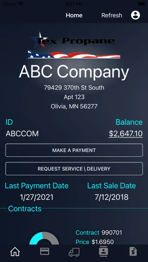 Information at your fingertips! This app gives you direct access to your account balance, location and contract information. It also gives you the ability to store and process payment and request service work and deliveries directly through the app.