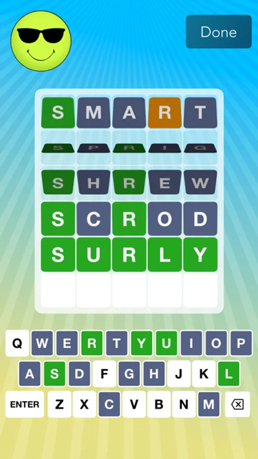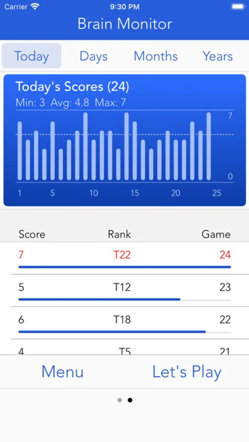 Brain Monitor measures cognitive function by tracking brain game results for up to 100 years. The game in this app, Synco, requires you to guess a hidden five-letter word, providing hints for correctly guessed and misplaced letters. Unlike other popular versions of this game, there is no limit on the number of guesses.