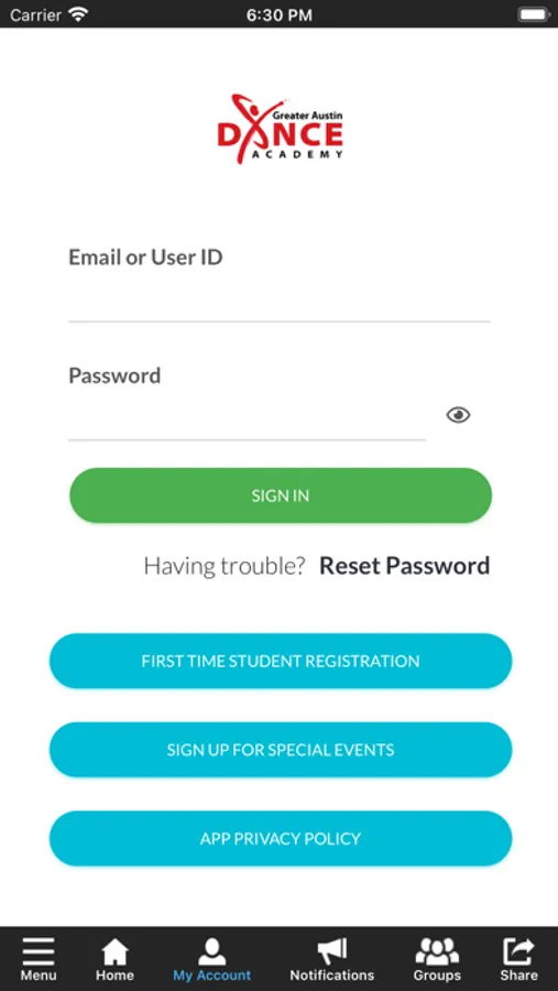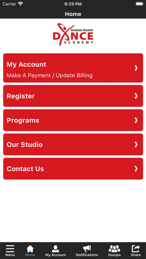The Greater Austin Dance Academy app allows you to manage your account with ease, register for classes, pay tuition, and even check in on your child's class! You'll also receive important notifications about event dates, closings, registration openings, special announcements, and upcoming events.