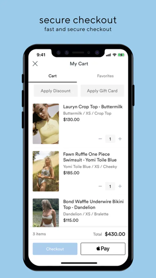 Tap, swipe, shop and secure your new products in an instant with our super easy checkout.