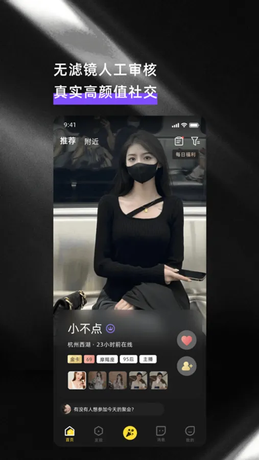 【顶尖颜值】每位女神都经过平台颜值认证,严格筛选,100%无滤镜真实社交;