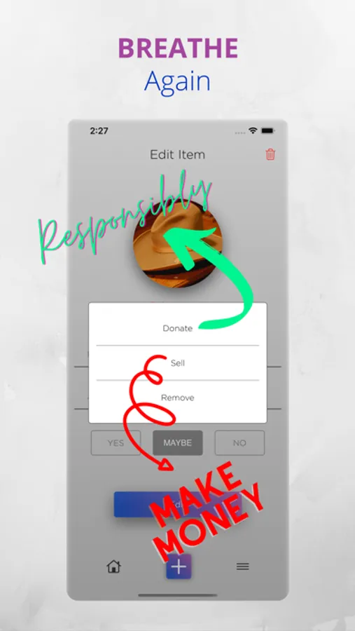 YES - MAYBE - NO boxes to decide your items future