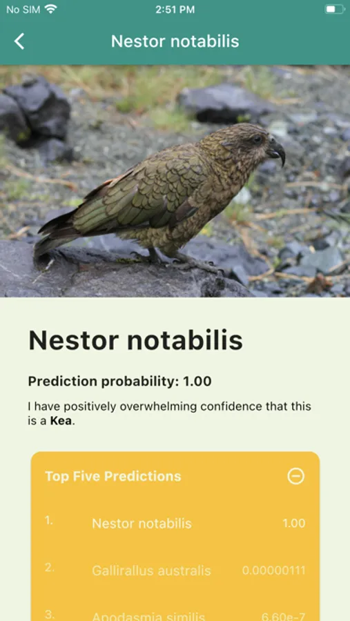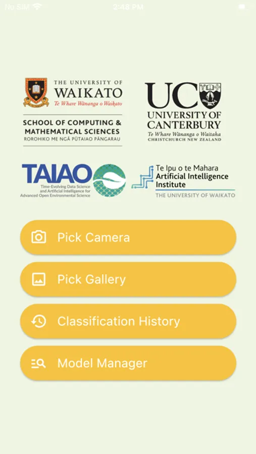 An app for classifying species found in Aotearoa New Zealand. Includes a model trained on 11047 species, both plants and animals, native and invasive, that can be found around New Zealand. Allows taking images by camera or selecting images from local storage. The model runs locally, so no network connection is required to make classifications.