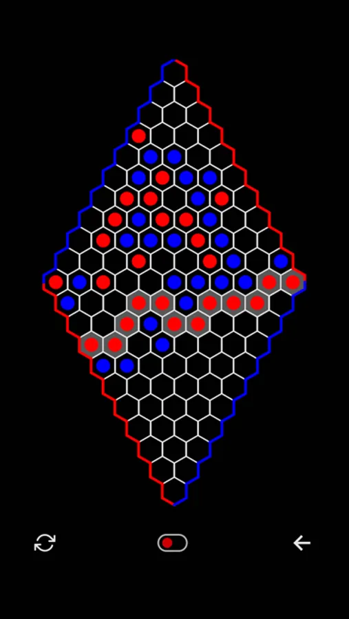 Hex is a strategy board game. Two players take turns putting their color on the board with the goal of making a chain that connects two opposite sides.