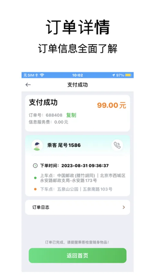 用户可通过app实时查看附近车辆位置,便捷的进行叫车服务,同时考虑到某些用户不便输入目的地,软件同步推出一键叫车功能,上车后告知驾驶员目的地,到达后进行支付,方便快捷,与此同时软件还推出了学生叫车专区,学生家长进入该专区后进行认证,通过后可进行学生单的叫车,方便接送学生去学校,巡游出租安全放心,为家长减轻上晚高峰接送学生的负担。
