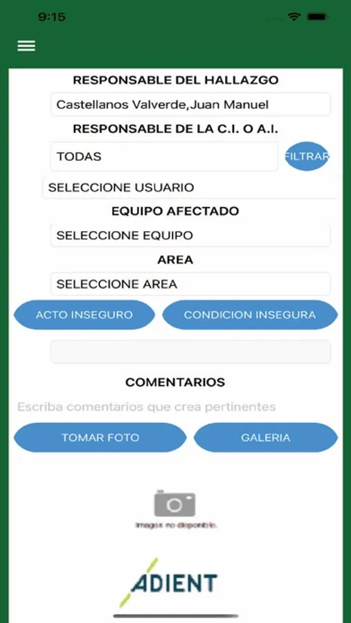 App diseñada para notificar incidentes dentro de la empresa adíent