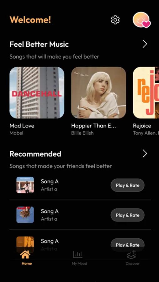 MoodyTunes will not share any of your personal information or sell your data to others. Please note that MoodyTunes is not an alternative to professional medical or mental health support. If you are experiencing symptoms of depression or are having thoughts of self-harm please reach out to professional help services, such as via resources available in MoodyTunes or through other online sources.