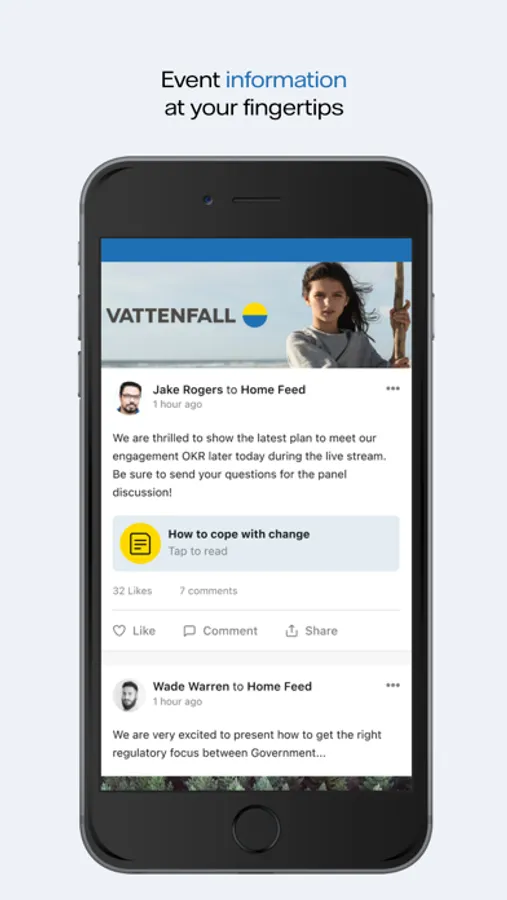 The Vattenfall engagement app turns lectures and content into conversations, conversations into connections and connections into collaborations, across teams, groups, and continents.