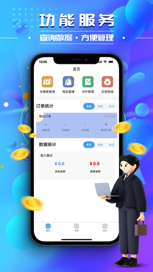沐星辰商家端是商家来进行数据信息查看以及平台管理的APP,全面精致,整合全面的管理系统,满足到商家的使用、管理需求。商家版设立全面管理板块,为商家的管理提供了良好的帮助,同时设立了订单统计、数据统计表等信息查看页面,可以让商家对数据进行清晰的查看,也可以通过数据分析进行整改与完善,使个人利益最大化,这里为商家提供了最全面、便捷的服务。