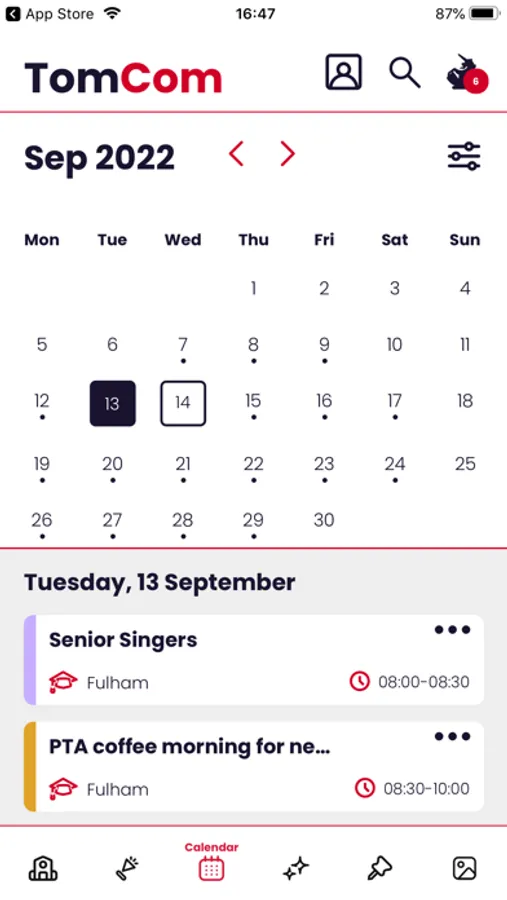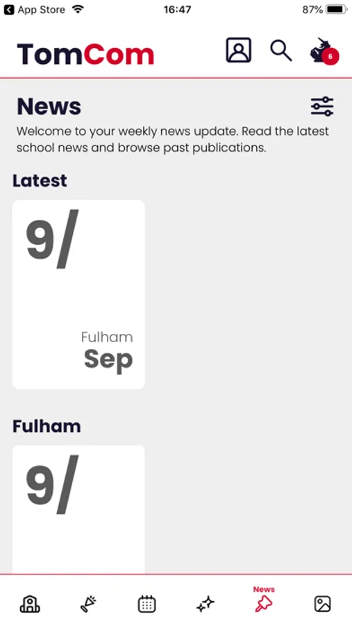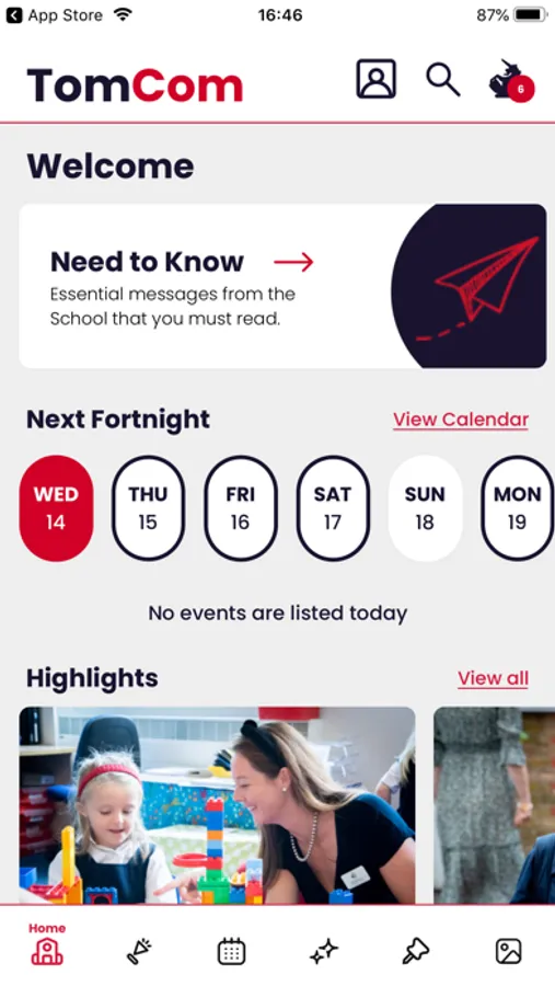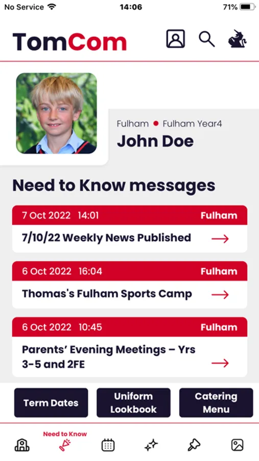 TomCom is used by Thomas's for all communications with parents and consists of 5 areas.