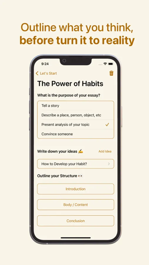 Choose the right goal of your essay, from telling a story to describing an object. Easy provides it all for you