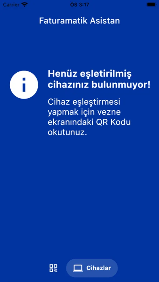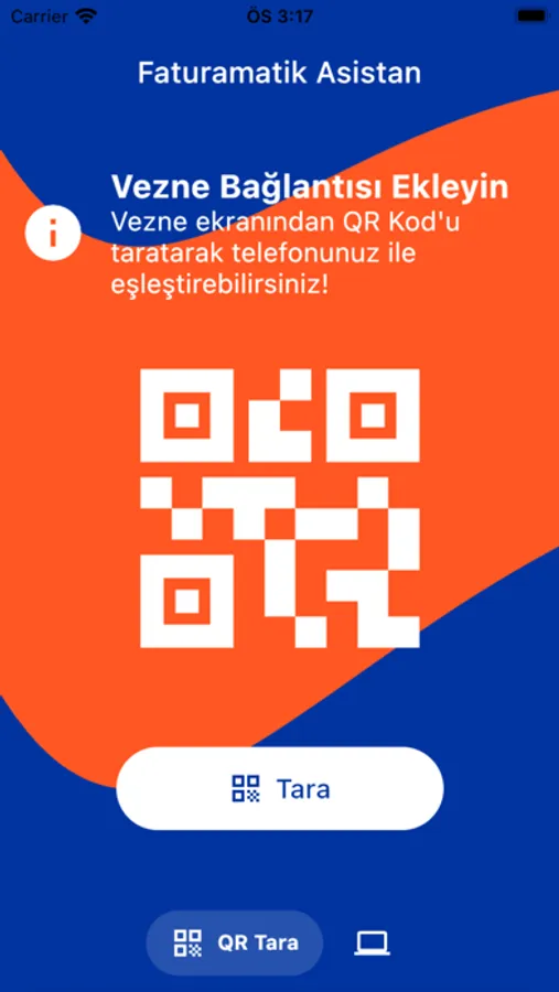Faturamatik temsilcileri vezne uygulamasına belge yüklemesini Faturamatik Asistan uygulaması ile daha hızlı yapabilirler. Belge yükleme ekranındaki QR kodu telefonunuzan taratarak vezne ile eşleştirmeniz gerekmektedir.