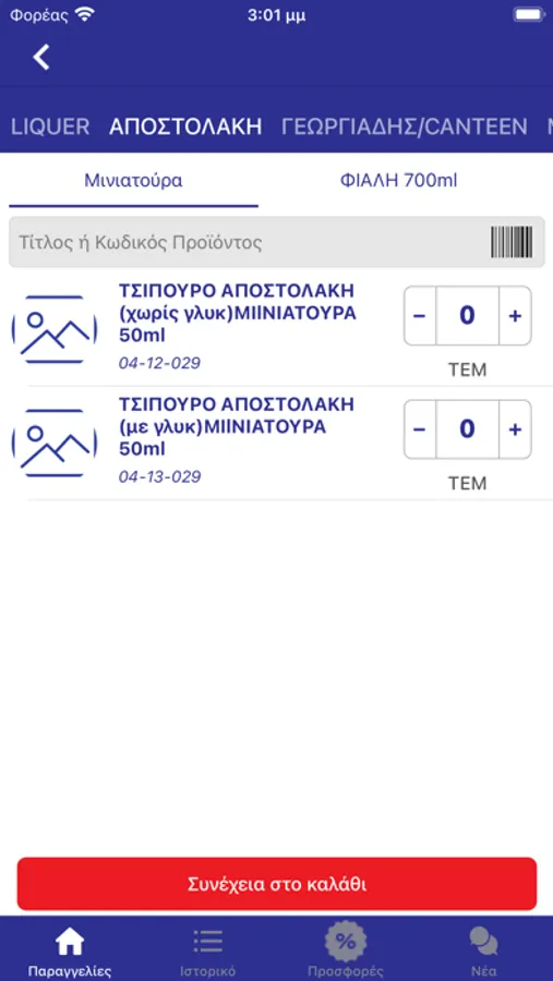 Δυνατότητα καταχώρησης & αποθήκευσης παραγγελίας ακόμα και χωρίς δίκτυο (για την αποστολή της παραγγελίας απαιτείται η σύνδεση στο δίκτυο)
