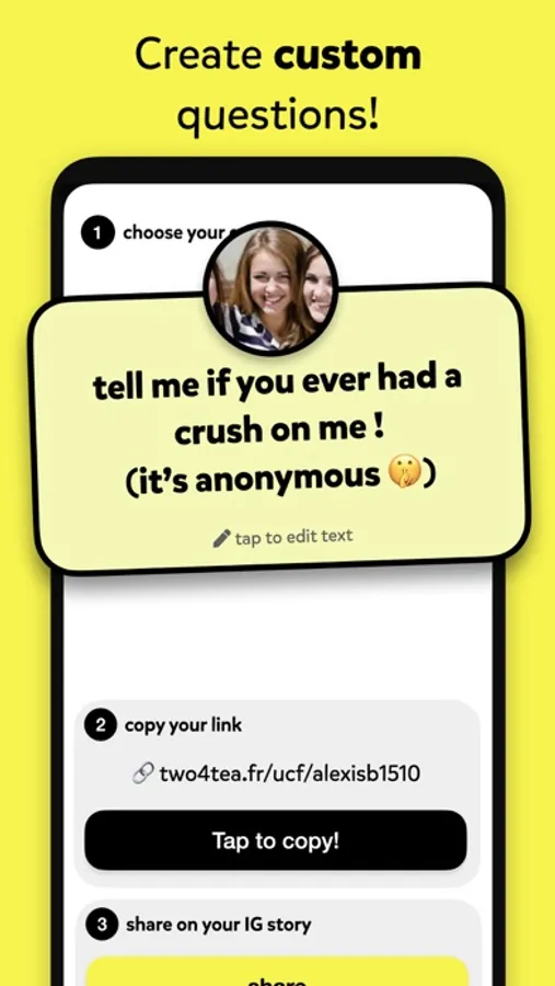 Want to know if someone has a secret crush on you? What your friends really think of you? You believe someone never dared tell you something IRL?