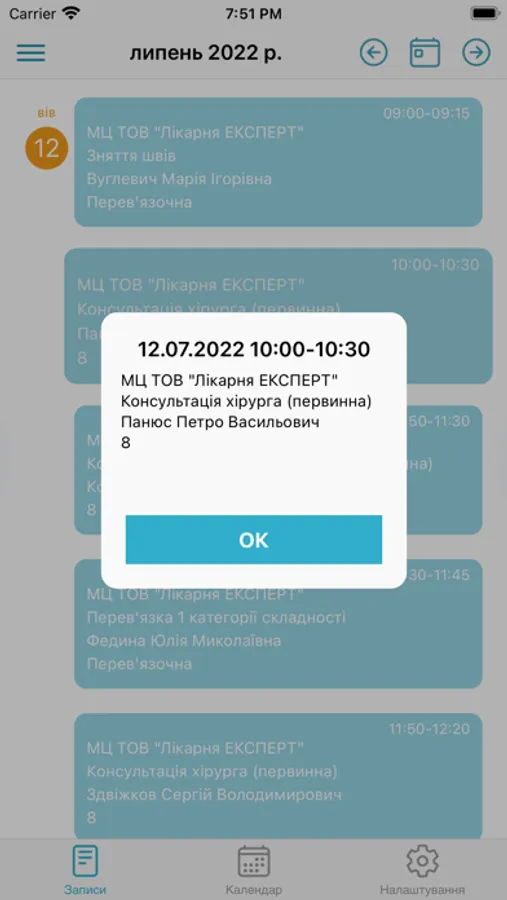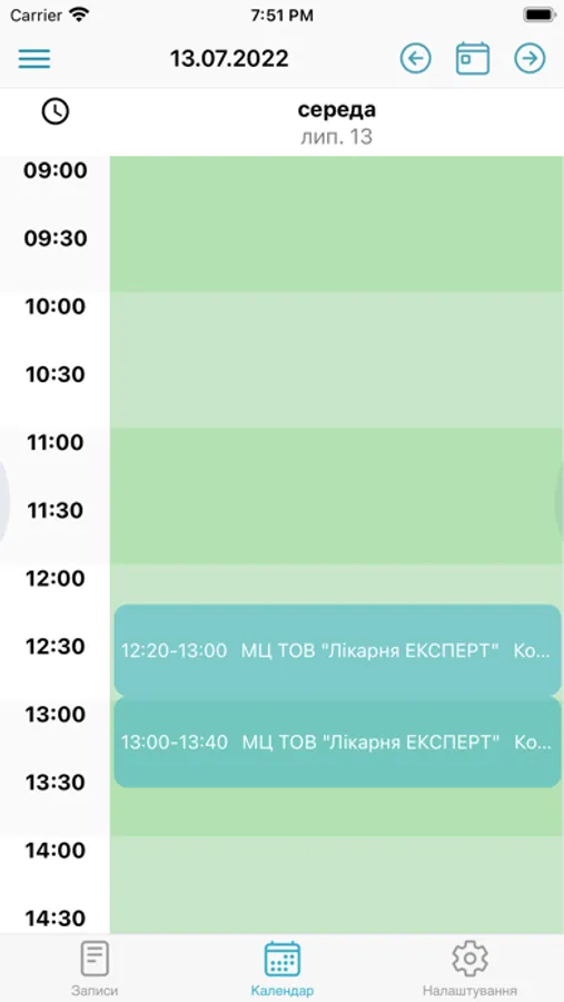 Мобільний додаток MedEir. Додаток інтегровано з медичною інформаціонною системою МедЕйр та має простий і зрозумілий інтерфейс з розділами "Записи", "Календар" та "Налаштування". У розділі "Записи" ви завжди зможете переглянути перелік запланованих прийомів на сьогодні або на наступні дні. Також Ви зможете налаштувати зручний вхід в систему за допомогою відбитка пальця або FaceId. Основна ціль додатка – допомогти Вам "розпланувати свій день" з урахуванням персонального графіка прийомів пацієнтів.