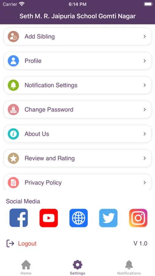 Seth MR Jaipuria GomtiNagar provides communication app for parents using which they can download school announcements, Class assignments, Events.