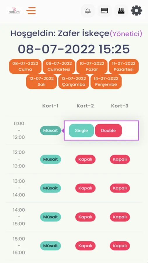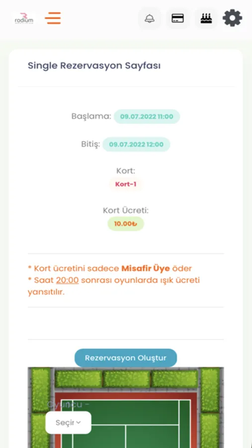 Rodium Sports & Life Club Tenis üye uygulaması ile üyeler rezervasyonlarını kontrol edebilir, yeni rezervasyon yapabilir, ödemelerini takip edebilir.