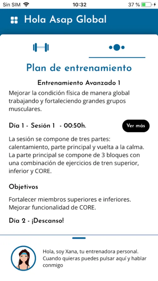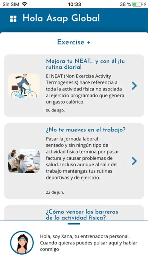 Un entrenador personal en la palma de tu mano. Xana, tu asistente virtual, te guiará de forma personalizada en tus entrenamientos según los objetivos previamente definidos para ti. Recibirás información y motivación, adaptada para ti, para cambiar hacia un estilo de vida más saludable, siempre con la ayuda de Xana.