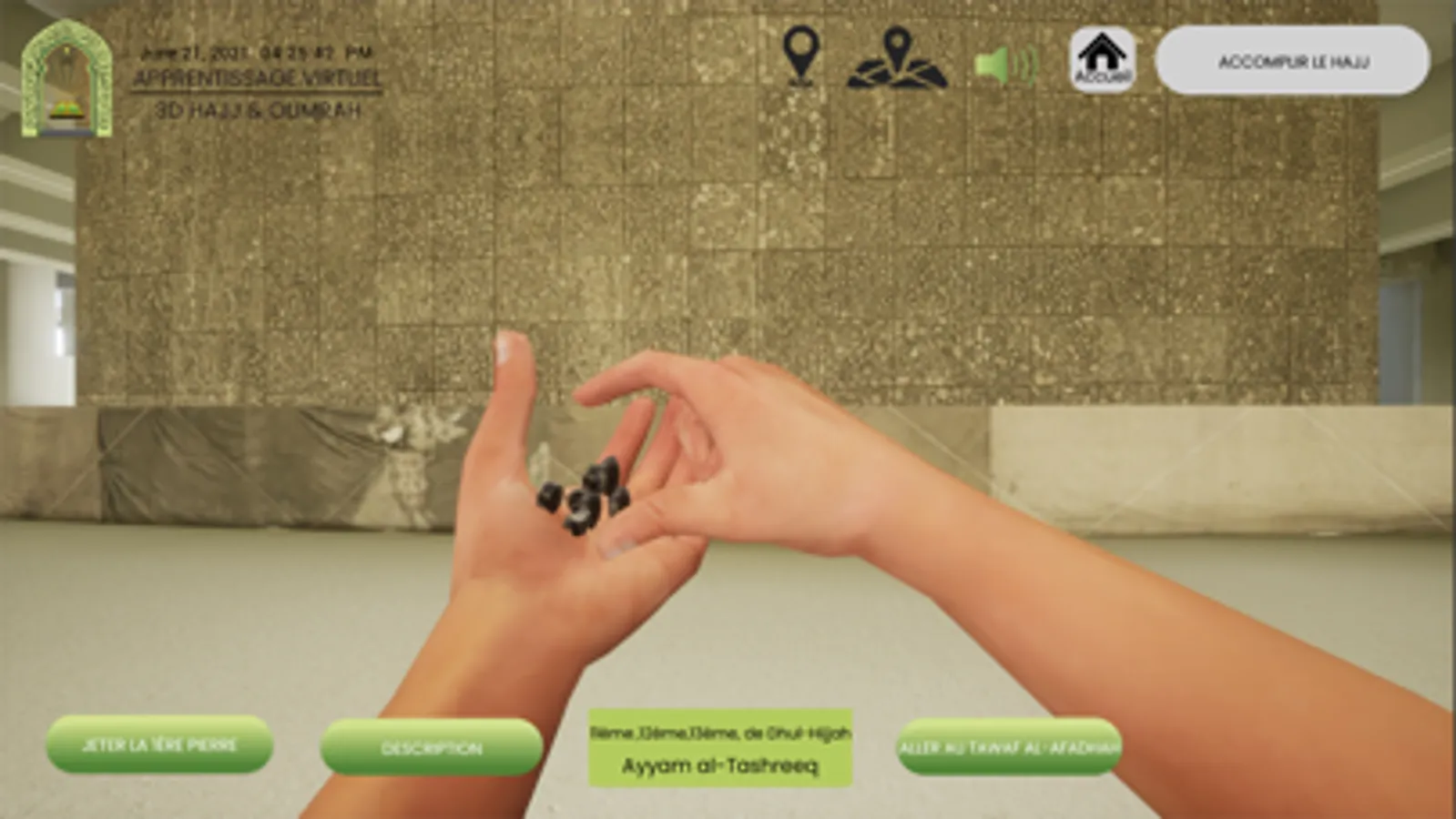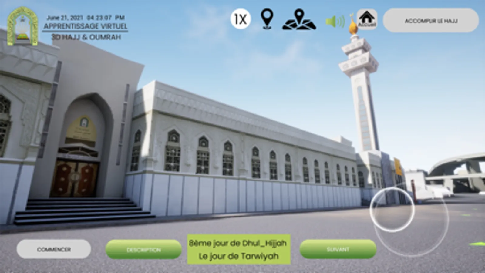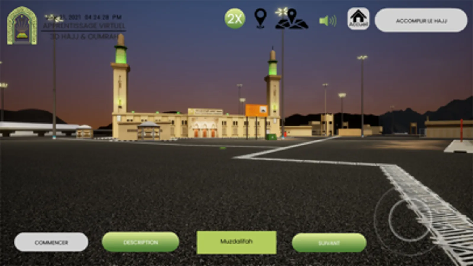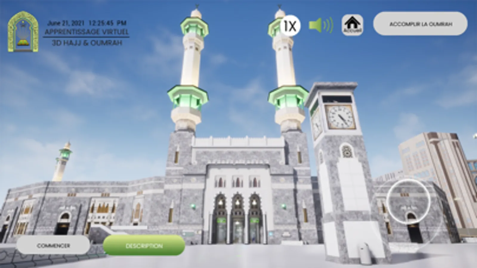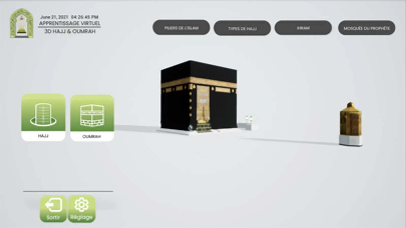 Le projet porte sur l'apprentissage virtuel, tridimensionnel, multilingue et multiplateforme pour le Hajj et la Oumrah. Il vise à former les utilisateurs à l'accomplissement correct des rituels du Hajj et de la Oumrah et à réduire autant que possible les erreurs courantes commises par les participants au pèlerinage, en apprenant des techniques étape par étape à l'aide de modèles tridimensionnels et de la réalité virtuelle, et cherche également à montrer aux non-musulmans qui ne peuvent pas visiter les lieux saints le sens du pèlerinage.