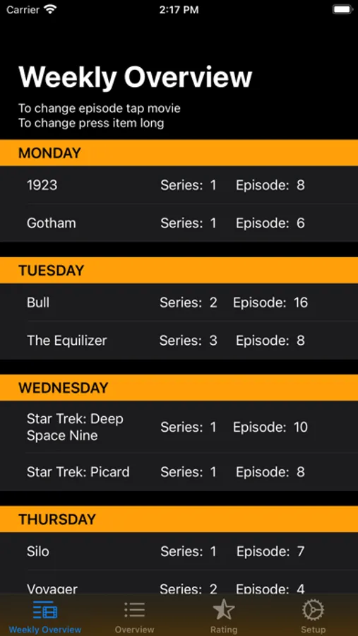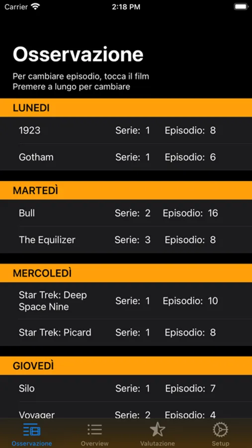 La tua app per gestire i tuoi film e le tue serie preferite. Ti mostra la solita serie settimanale. Gli stessi dati per iPhone e iPad. Funzione di backup inclusa quando si cambia cellulare o si scambiano dati.