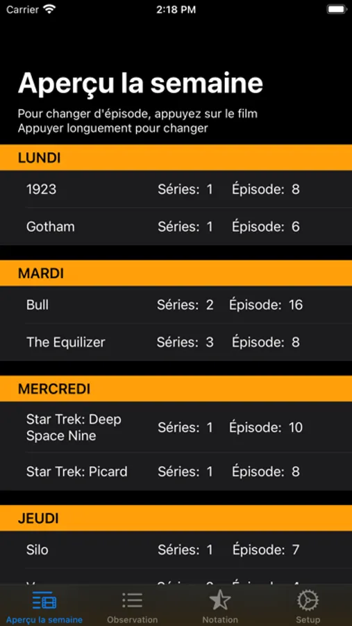 Votre application pour gérer vos films et séries préférés. Il vous montre la série habituelle hebdomadaire. Les mêmes données pour votre iPhone et votre iPad. Fonction de sauvegarde incluse lors du changement de téléphone portable ou de l'échange de données.