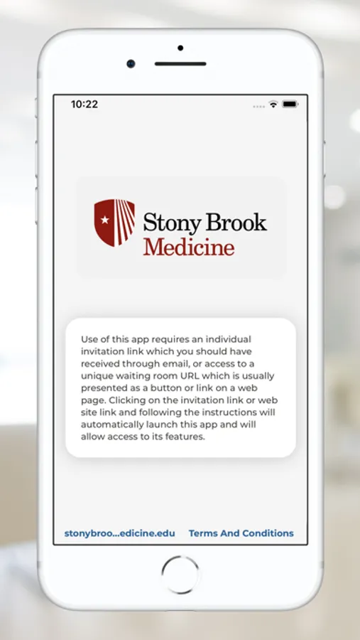 The Stony Brook Medicine Patient App enables video communications with your healthcare provider on your iOS device. Use of this App requires an individual invitation link delivered via email or SMS from your provider; or access to a unique waiting room URL. Clicking on the invitation link or website link will launch the App and allow access.