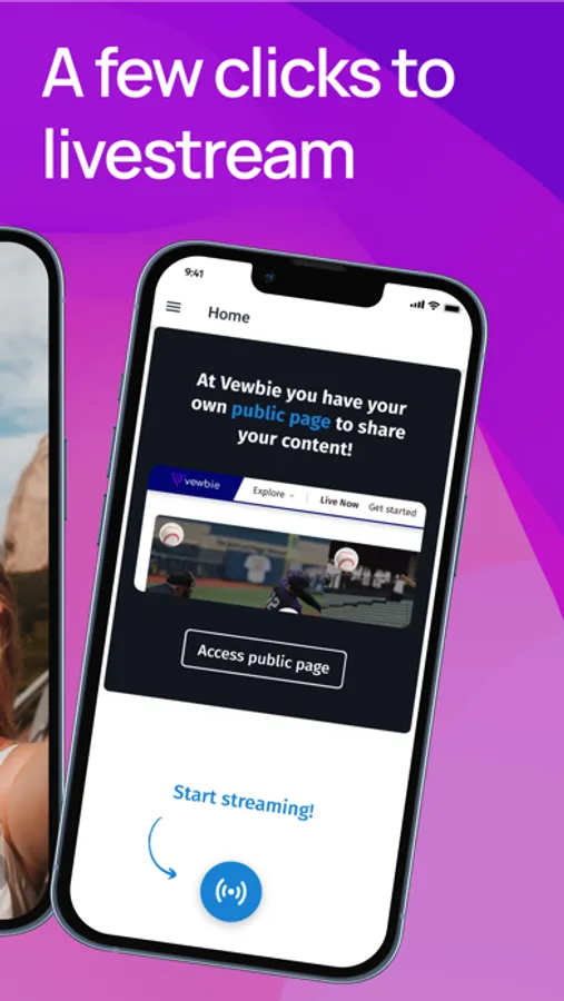 Looking for a way to easily go live and organizing your content? Look no further. Vewbie is a broadcasting software that allows you to live stream with a few clicks using just your smartphone camera and you’ll have your own public site where everyone can watch your broadcasts. Whether you’re an artist, a Real Estate Agent, or just a mom that wants to stream your son’s sports games, Vewbie is for you.