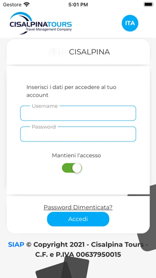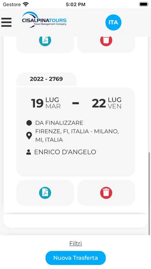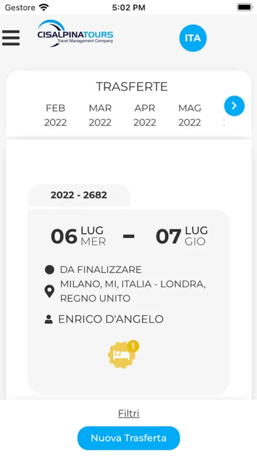 MYTICO è l’app che consente la gestione della propria trasferta dovunque e in ogni momento. Una sola app, che include tutte funzionalità del portale MyTico di Cisalpina Tours. Accesso online a tutte le trasferte, in qualsiasi luogo e momento della giornata. Consultazione di tutti i dettagli del proprio viaggio d’affari e facile accesso all'archivio delle proprie trasferte in corso e quelle future. Assistenza continua degli Operatori Cisalpina Tours a portata di click per una trasferta completamente digitalizzata, funzionale e sicura. Grazie al sistema self booking integrato attivabile all'interno dell’app, il traveler potrà effettuare direttamente ricerche e prenotazioni in tempo reale. MYTICO contiene informazioni dettagliate su voli, hotel, noleggi, treni per un controllo totale della propria trasferta. Un viaggio d’affari sicuro, informato e digitalizzato.