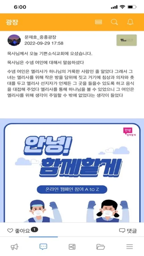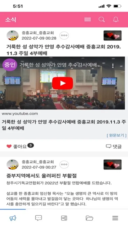 중흥교회 소통과 커뮤니티를 위한 앱서비스입니다. 교회와 신도들간 정보교류, 물물교환, 자료실 등. 교회활동에 필요한 쉽고 편리한 소통과 커뮤니티를 중심으로 한 서비스입니다.