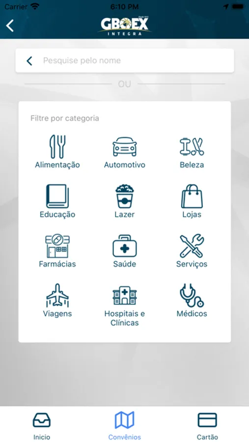 Aplicativo para buscas de conveniados GBOEX em todo pais