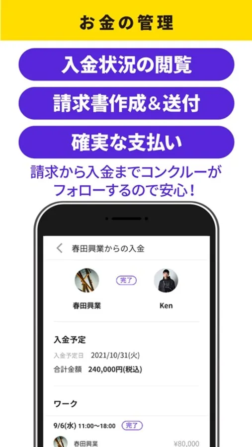 ・請求書は自動作成!入金までコンクルーがフォローします!