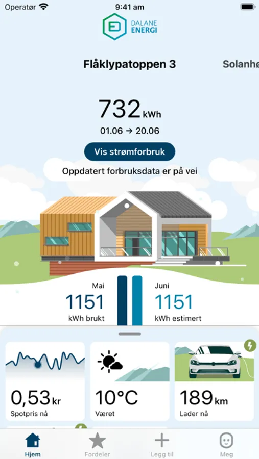 Last ned Dalane Energi-appen og få kontroll og oversikt over ditt strømforbruk. Med appen kan du lade elbilen når strømmen er billigst, koble opp smarte produkter og se hvilke utslag årstid, vær, helger og ferier har på strømforbruket ditt.