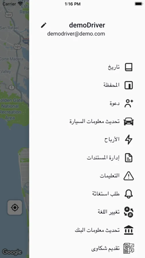 يستقبل السائق الطلب من تطبيق العميل ثم التوجه الى العميل ونقله بكل اريحية وامان المكان الذي يريده العميل