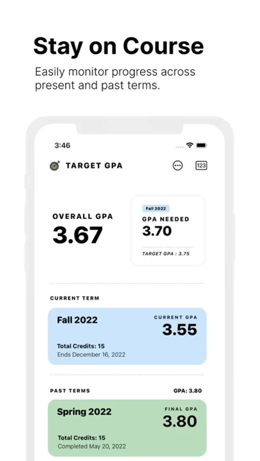 Whether you are in college, high school, or middle school, use Target GPA to track your GPA and stay to top of your academic goals.