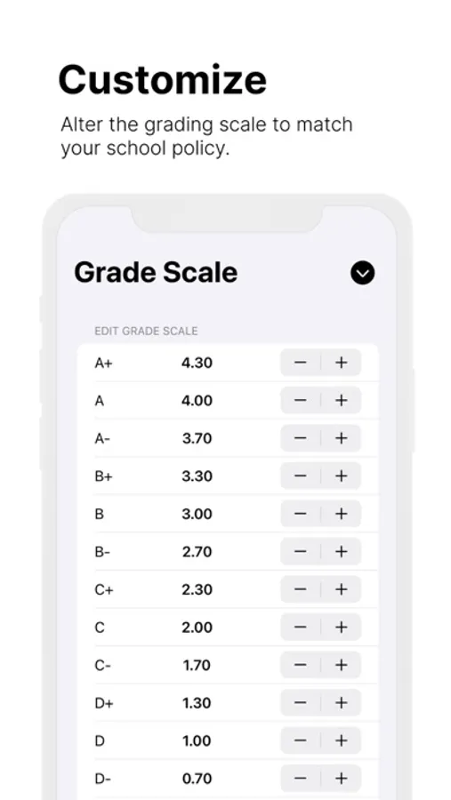 - Clearly see how adjustments to your current grade will impact your overall GPA.