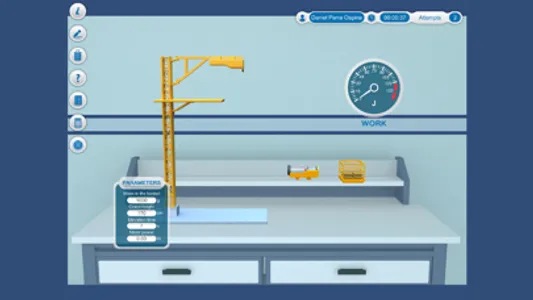 In this practice it is necessary to use the concepts of power, work and force to configure a motor and achieve a mass lift. The simulator recreates a load lifter with a motor, a crane base and a load basket to experimentally test if the power calculation for the motor was correct.
