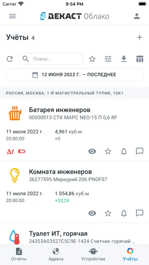 Контроль и учет ресурсов воды, тепла, электричества и газа с помощью умных устройств компании Декаст и других производителей. Автоматическая отправка показаний в mos.ru, уведомления о протечках, выгрузка отчетов и прочая полезная функциональность, которая сделает вашу жизнь немного проще и безопаснее!