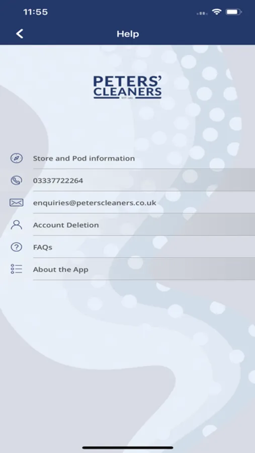- Quickly contact Peters' Cleaners by phone or email and access their website all directly from your device.