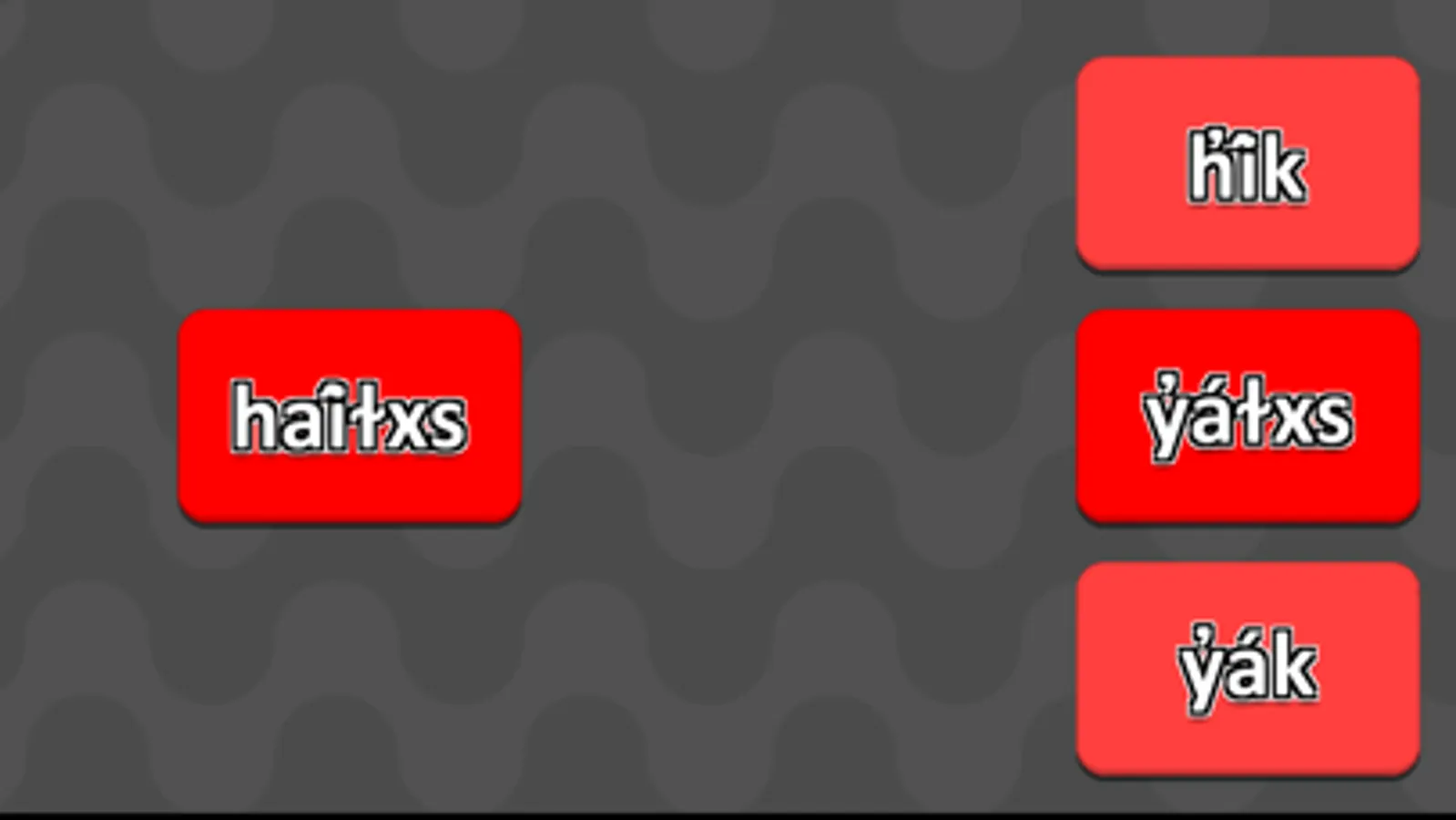 Come and match animals in Heiltsuk and you will learn the names of animals in Heiltsuk. This game was made with Heiltsuk sásṃ in mind but is made for anyone that would like to learn the names of different animals in Haíɫzaqvḷa.