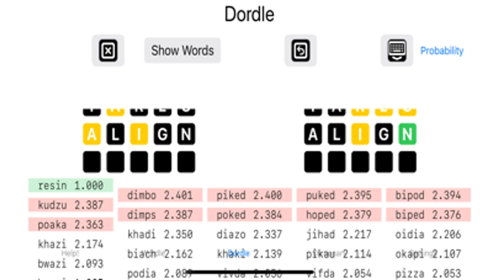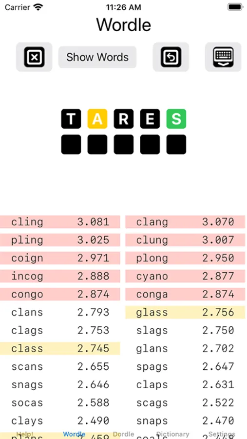 clues you got from Wordle (or Dordle or Quordle), and click “Show Words”