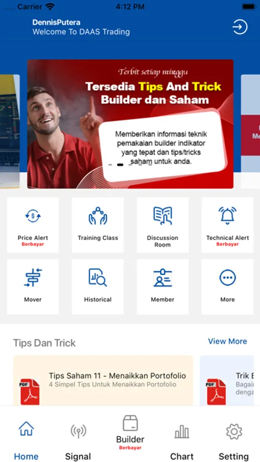DAASTrading.id adalah Platform Pasar Saham Profesional, yang mana kami menyediakan Charting Saham, Screening Saham, Price Alert, Mover, Teknikal Alert, Training Class, Insight Saham, Builder Screener dengan ide-ide liar Anda.