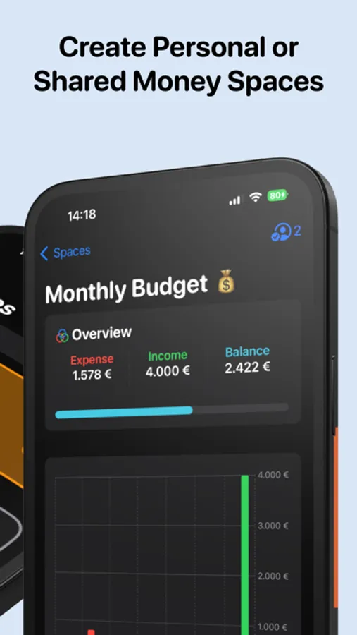 MoneySpaces lets you create budgets, accounts or any money lists and is perfect to help you track all of your expenses.