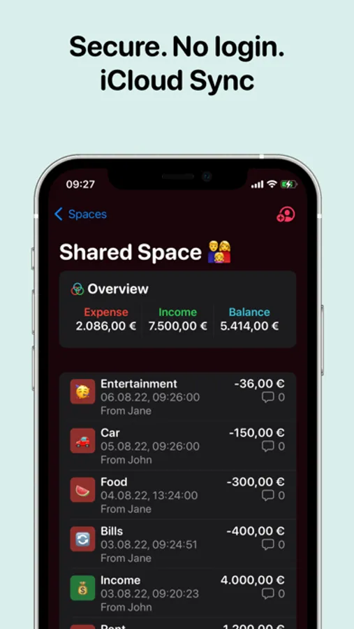 With MoneySpaces, you can easily create and share budgets, accounts, and money lists with anyone, whether it's your family, friends, or work colleagues. Plus, you can collaborate, comment, and manage your financial spaces together, all while keeping your information secure with iCloud and CloudKit.