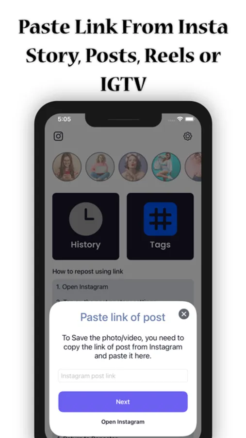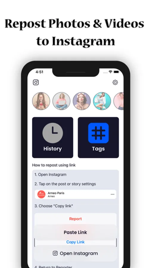 5. Save repost history for Instagram. You can view the history of your repost or share it with your friends