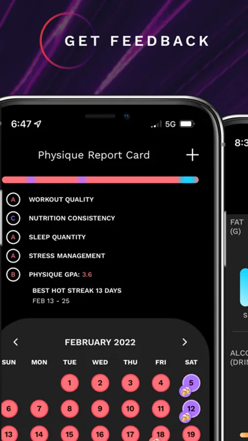 - You can view your data next to your progress pics to identify exactly what you were doing when you looked your best.