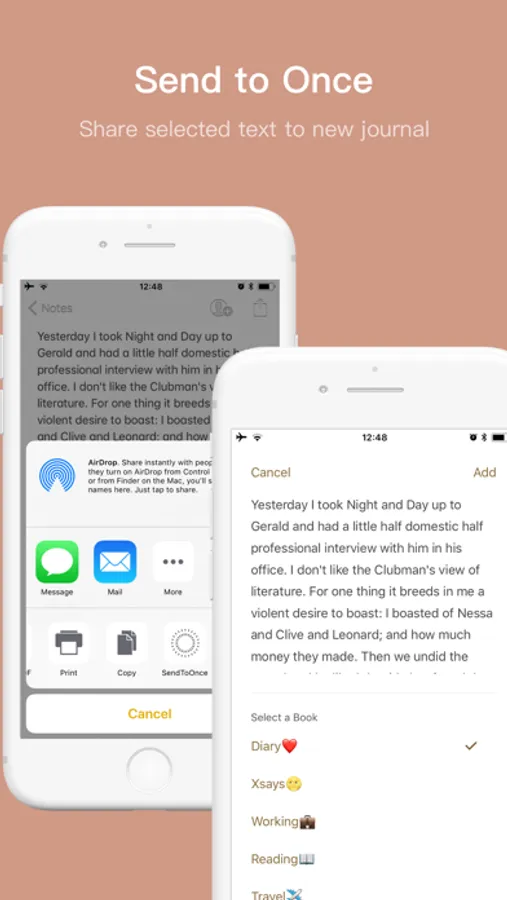 • Share plug-ins (support for Safari, memos, etc.): text sharing as a new diary (If the icon is not displayed, click more to activate)