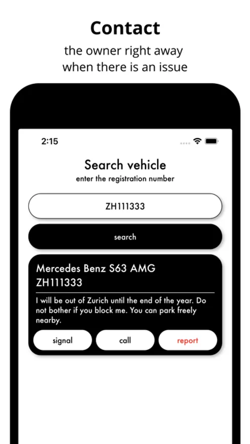 The app makes it possible to search for a vehicle's owner just by typing the car registration plate number and contact them in case of a need. In addition, you can search the map around you for more information on parking spaces where you can and where you can not park. On the one hand, the goal is to make it easy to reach the owner of a vehicle and quickly resolve any issues in a good manner. On the other hand, people who are trying to find a parking space nearby can easily do so, while people who have parking spaces that are frequently visited by others can put a label and a message on the space and let others that it is not allowed to park there.