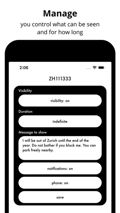 ● You have nowhere to park and you are in a hurry? Leave a message for your car so others can reach you if necessary.